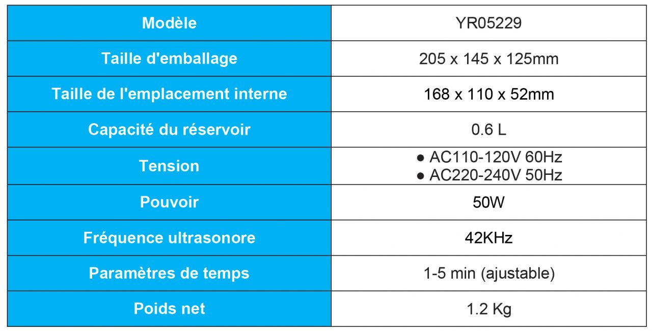 Caractéristiques de la Nettoyeur A Ultrasons