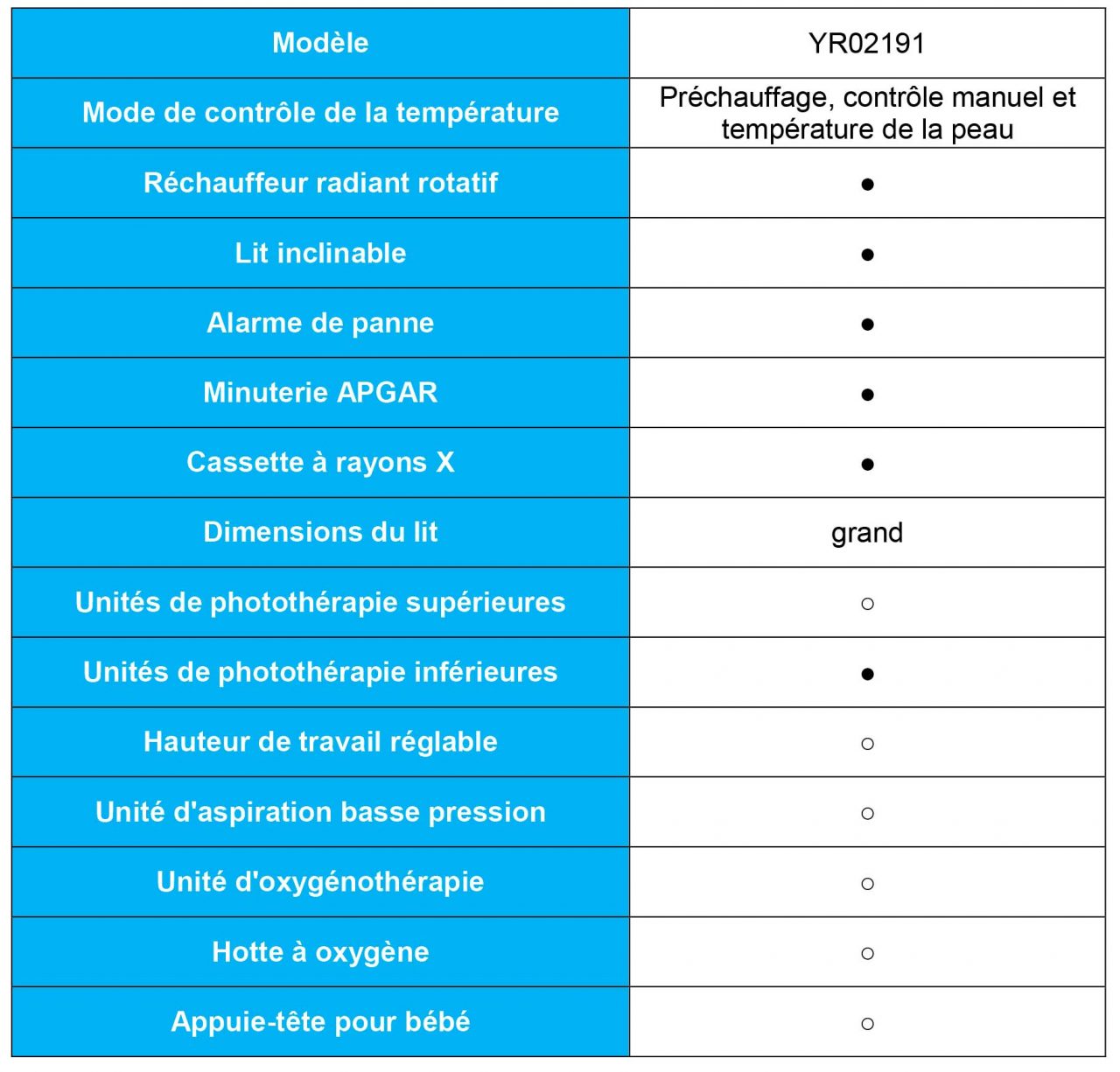 Caractéristiques de la Réchauffeur Radiant Pour Bébé