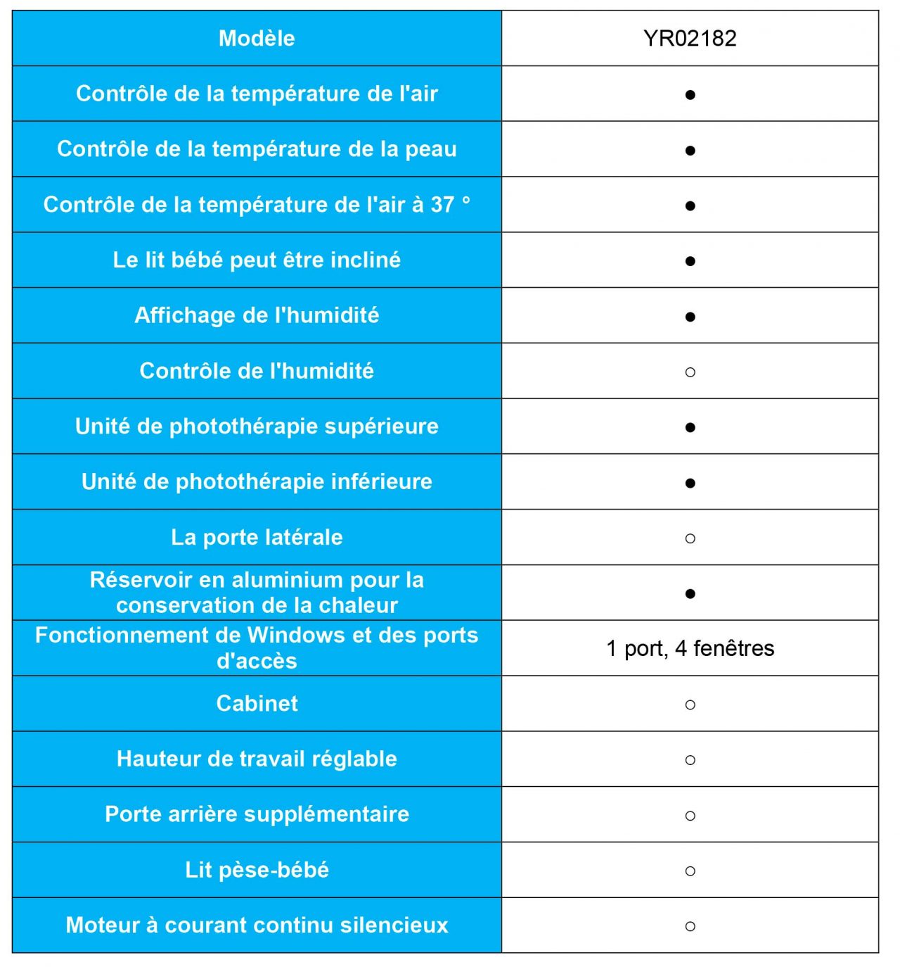 Caractéristiques de l’Unite De Photothérapie À La Bilirubine Infantile