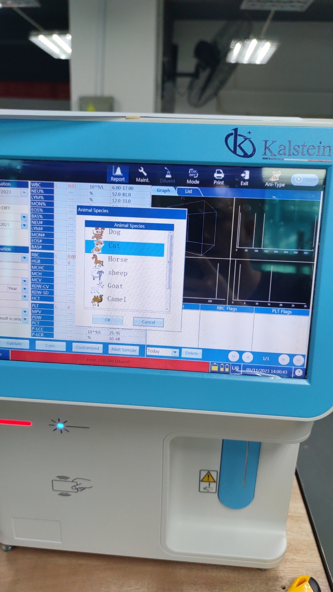 Découvrez l’Analyseur d’hématologie vétérinaire modèle YR05122-V, un appareil sophistiqué conçu pour fournir des analyses sanguines précises et complètes pour une variété d’espèces animales, y compris les chiens et les chats. Cet instrument de pointe utilise la technologie de diffusion laser triangulaire, la cytométrie en flux et l’impédance pour mesurer avec précision les globules rouges (RBC) et les plaquettes (PLT). Avec la capacité de traiter jusqu’à 60 échantillons par heure, cet appareil est conçu pour améliorer l’efficacité des laboratoires vétérinaires, tout en nécessitant des volumes sanguins minimes, ce qui minimise le stress pour les animaux.