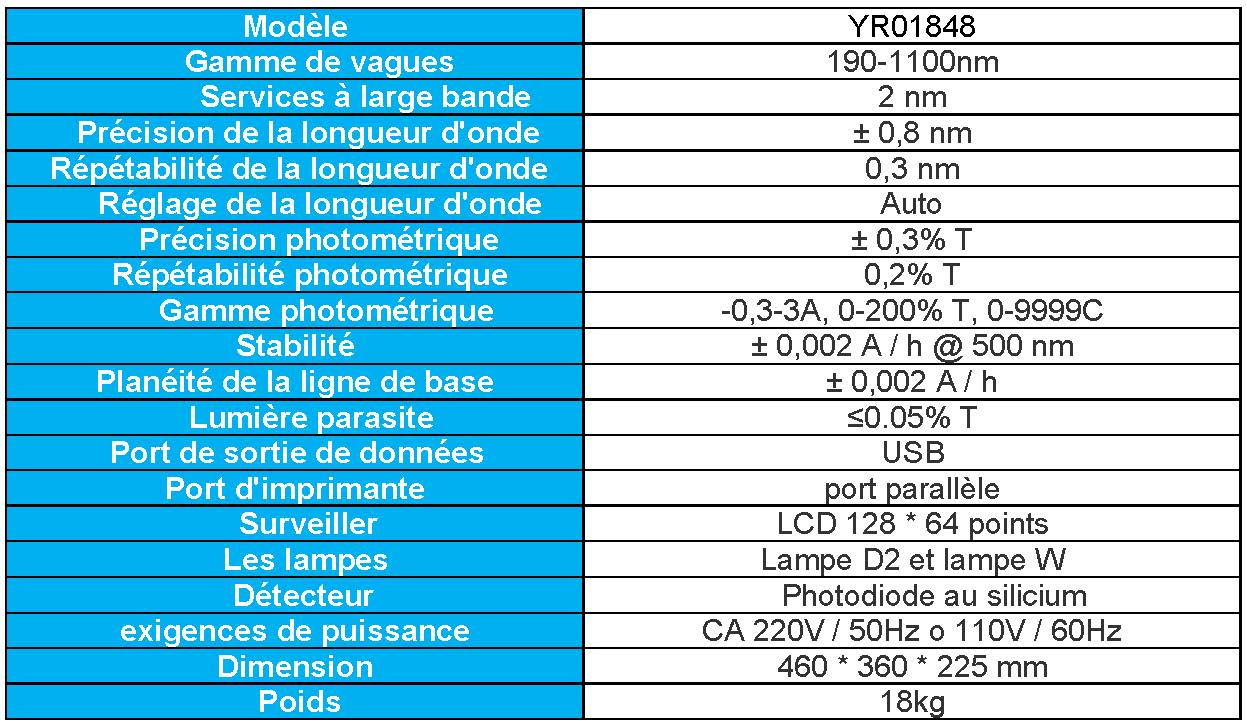 | Caractéristiques | Kalstein VIS – YR01848 | Metash UV-6100 |